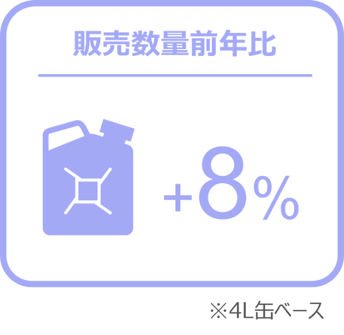 2024年9月の自動車用エンジンオイル販売は、販売量(リットル換算)ベースで前年比17%増と二桁成長を見せた。販売形態別にみると、量り売りは販売量前年比20%増、缶売りは同12%増であった。4L缶の販売は数量前年比8%増で、店頭では同9%増であったものの、インターネットでは同6%減と前年を下回った。粘度別では5W-30が店頭では数量前年比9%増であったことに対し、インターネットでは同1%減であった。