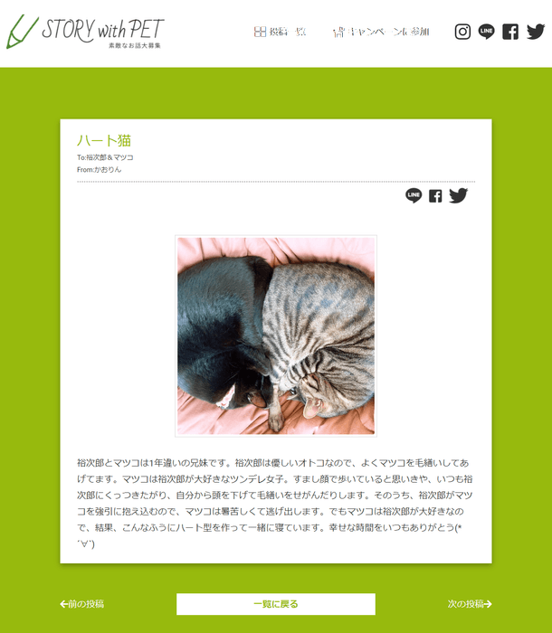 「ハート猫」ペットとの絆を語ろう。1投稿500円が寄付になり保護犬猫が救われます