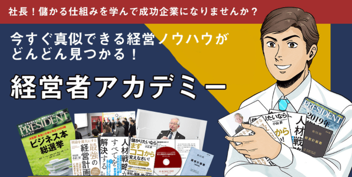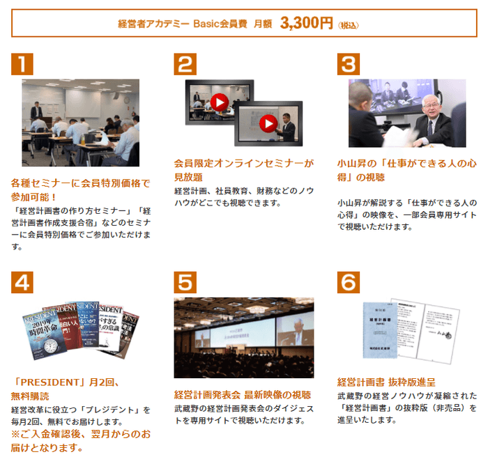 「経営者アカデミー」は武蔵野流経営をまずは社長1人で学びたいという方向けの会員制度です。