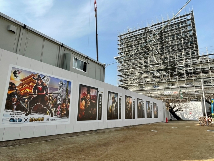 整備中の福山城を楽しむフォトスポット! 「信長の野望」コラボデザインシートを設置!