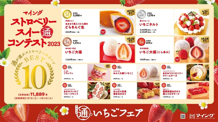 お客様投票でいちごスイーツ人気No.1を決める「マイングストロベリースイー通(ツウ)コンテスト2023」結果発表!