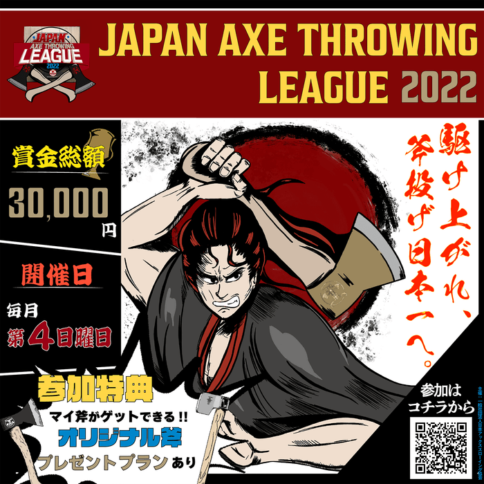 「"Japan Axe Throwing League 2022"〜駆け上がれ、斧投げ日本一へ。〜」は、2022年5月から11月の期間に毎月開催されます。
