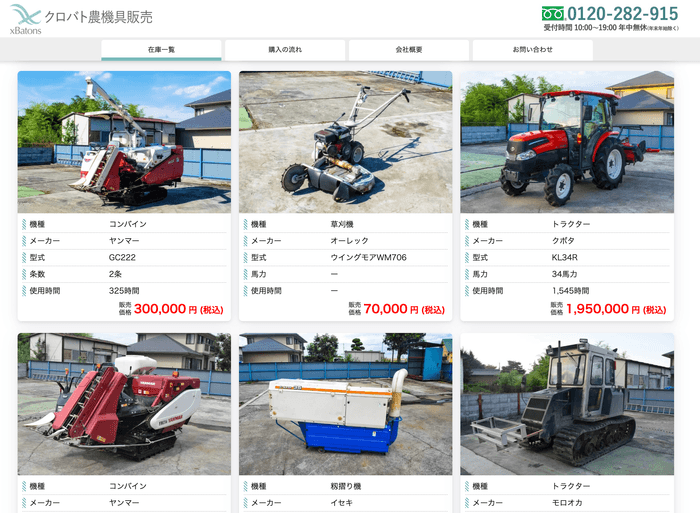 中古農機具販売サイト「クロバト農機具販売」の運営を開始しました。