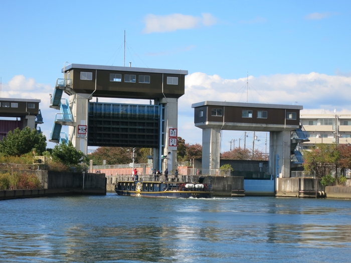 パナマ運河と同じ方式を用いた船のエレベーターのような施設で、ほかにも「毛馬排水機場」や「淀川大堰」「毛馬水門」とあわせて毛馬施設と言い、大阪の治水事業にとって重要な役割を果たしています。