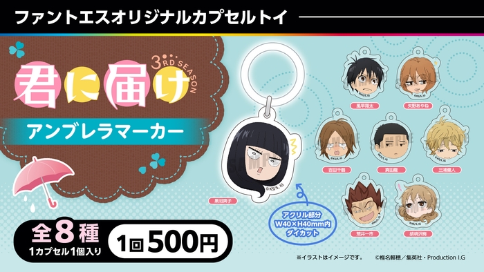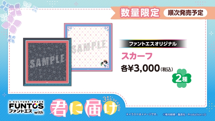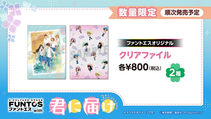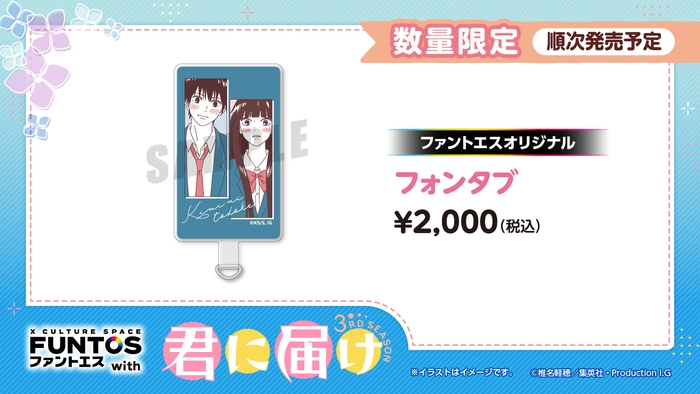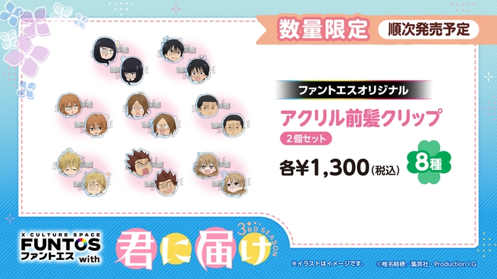 コラボ特別イラストグッズのほか、アニメイラストを使用したフォンタブや前髪クリップも登場!『ファントエス with 君に届け 3RD SEASON』は全国のファントエスにて開催!