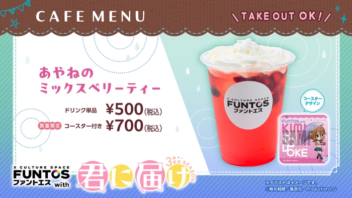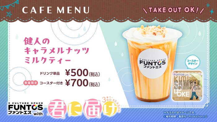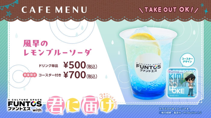 また、カフェ併設店舗では爽子達をイメージしたコラボドリンクなどを販売予定です。