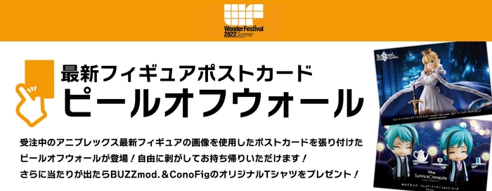 アニプレックスの最新フィギュア画像を使用したポストカードをおひとり様1点限り自由にお持ち帰りOK!更に、当たりが出たらConoFig&BUZZmod.の特製オリジナルTシャツをプレゼント!