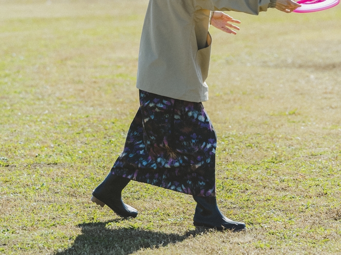 巻いて履くタイプなのでアクティブに動いてもはだけない!レジャーシートの代わりにもなる万能スカート。アウトドアだけでなく雨天時の自転車にもおすすめです。内生地へ柔らかな素材を使用することで、地肌に触れる際の肌ストレスを軽減しています。