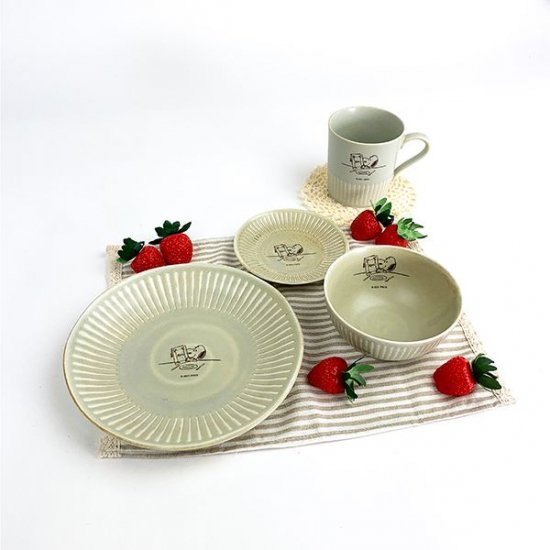 レトロなテイストの美濃焼食器ですが、スヌーピーのイラストが入るだけで一気にオシャレに変身♪