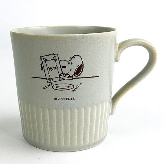 スヌーピーがレストランでメニューを見ているこのデザイン、食器にピッタリだと思いませんか。表情もとってもかわいくて、オシャレですよね。
