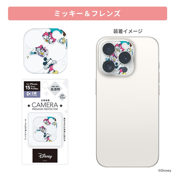 ディズニーキャラクターデザインのiPhone15ProやiPhone15ProMAXのカメラレンズを保護するカメラレンズプロテクターを株式会社PGAが4月19日から新発売