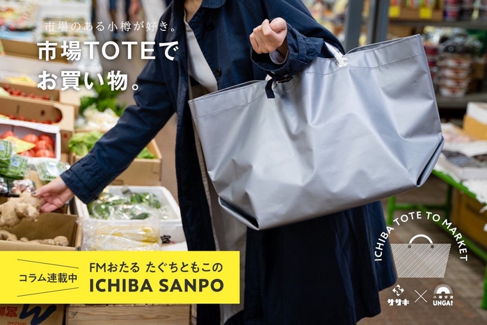 FMおたるパーソナリティ田口智子さんが、小樽百貨UNGA↑と株式会社ササキのオリジナルコラボレーションバッグ「ICHIBA TOTE」を片手に、小樽の「市場」の魅力をたっぷりお届けするオンラインコラムも配信中です。