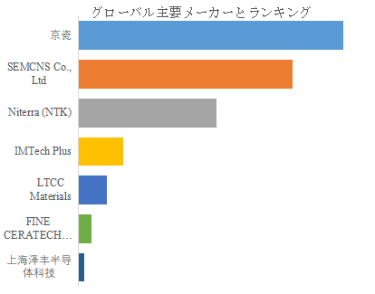 LP Informationのトップ企業研究センターによると、日の世界的な主要製造業者には、京瓷、SEMCNS Co., Ltd、Niterra (NTK)などが含まれている。2024年、世界のトップ3企業は売上の観点から約84.0%の市場シェアを持っていた。