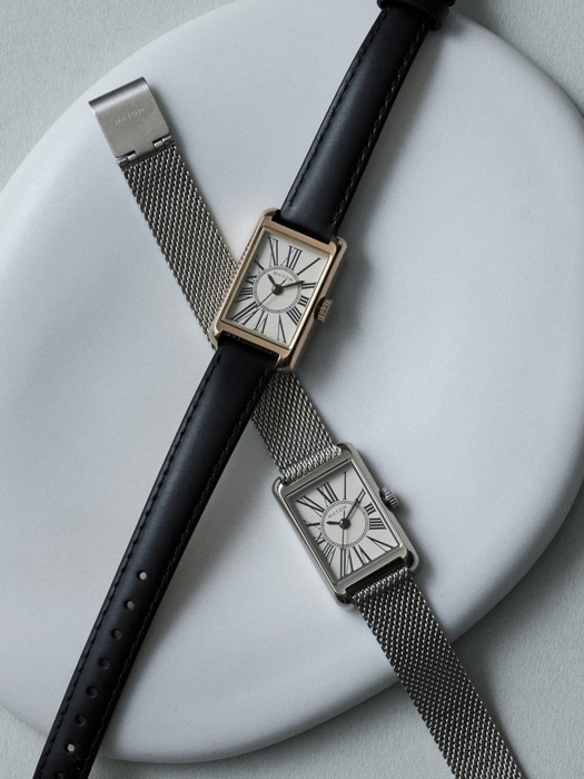 また、全国のチックタック系列店では限定モデルとして、新作『朧月/サークルローマン』のローズゴールドメッシュモデル(税込¥22,000)と、ベストセラー『朧月』のゴールドケース× ブラック型押しレザーモデル(税込¥20,900)の2型を発売いたします。