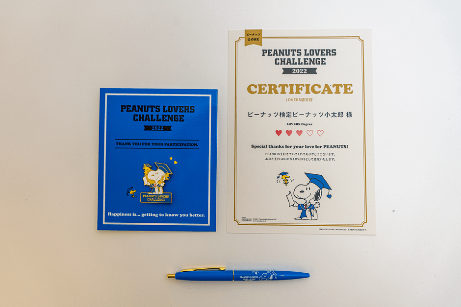受検者全員に「PEANUTS LOVERS CHALLENGE 2022」でしか手に入らない4大特典を進呈します。