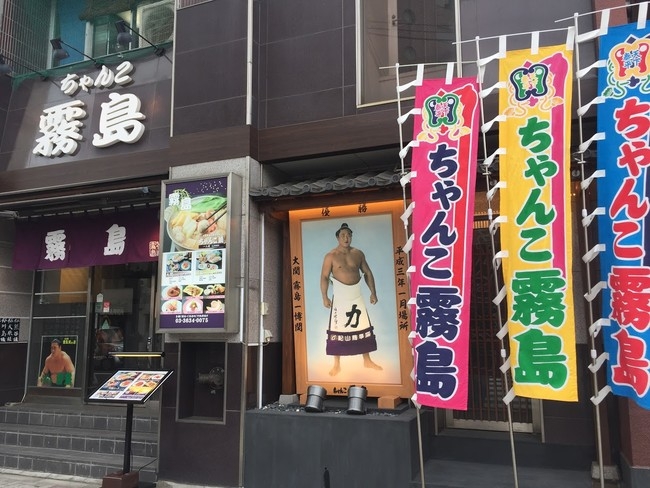 両国国技館のあるJR両国駅前、地下1階から8階までビル1棟(320席)全てがちゃんこ霧島。