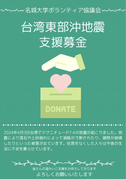 【名城大学】ボランティア協議会が台湾東部沖地震の支援募金を呼び掛け
