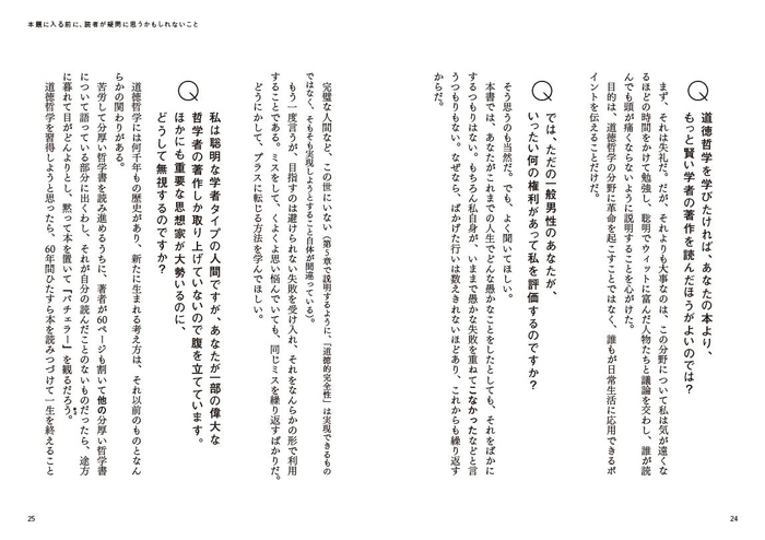 本書を読み終えるころには、どんな状況に直面しても検証可能な道徳的利益をできるだけ手に入れるために、どう振る舞えばよいかがわかるはずだ。