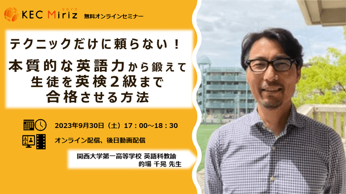 教育コンテンツの販売(プロクラ、CHATTY)を手掛ける、株式会社KEC Miriz(所在地:大阪市阿倍野区、取締役社長 冨樫 優太)は、「テクニックだけに頼らない!本質的な英語力から鍛えて生徒を英検2級まで合格させる方法」無料セミナーを2023年9月30日(土)17時00分〜18時30分に開催いたします。