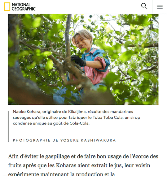 ナショナルジオグラフィック フランスでTOBA TOBA COLAが取り上げられました。
