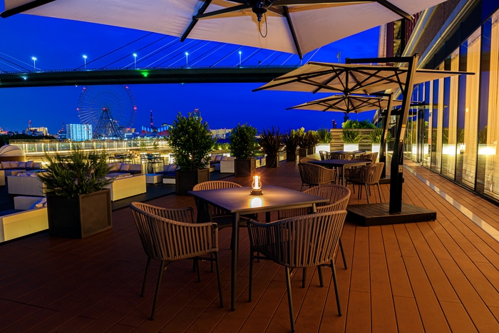 大阪ベイエリアを一望できる、開放感たっぷりのテラス席!