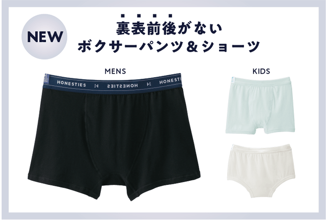 家族みんなを幸せにする、裏表のないスマート肌着「HONESTIES(オネスティーズ)」を2019年7月にリリースし、続いて2019年12月、世界初の「裏表がない」+「前後もない」スマート肌着「HONESTIES ∞(オネスティーズ アンリミテッド)」をリリースしTVでも話題となり国際的なユニバーサルデザインの賞も受賞のHONESTIES株式会社(代表取締役社長 西出喜代彦)が、今度は裏表前後のないスマートに生きる男性・お子さまのためのボクサーパンツをmakuakeで先行販売を開始しました!初日で目標の300%の達成をしています。