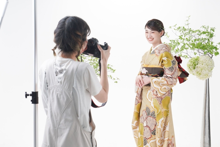 『kiruto』では、振袖および袴と小物一式をお客様の自宅まで直接お届け。前撮りは式典と別日でゆっくりと、広告撮影などでも使用される本格スタジオで撮影いただけます。また、撮影を担当するのはウェディングや子ども写真で活躍する経験豊富なヘアメイク&フォトグラファーです。衣装のレンタルだけでなく撮影まで一貫してサポートできるのは、長年ウェディングフォトやアニバーサリーフォトをプロデュースしてきた、デコルテならではの強みです。
