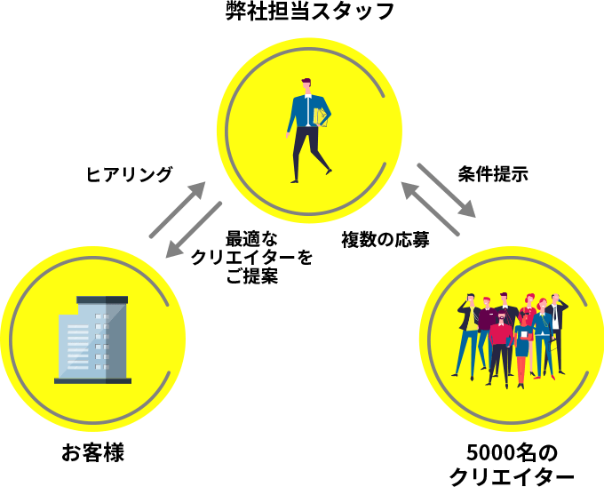 弊社在籍のクリエイターから、お客様のご要望に合わせた最適な人材をご提案。