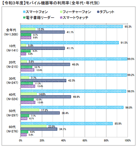 総務省の情報通信メディアの利用時間と情報行動に関する調査報告書によると、スマホを使用している割合は10代で91.5%と、9割以上の方がスマホを使用してインターネットを閲覧しているということになります。