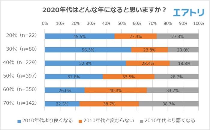 株式会社エアトリ(本社:東京都港区、代表取締役社長 兼 CFO:柴田 裕亮)の子会社で総合旅行プラットフォーム「エアトリ」(https://www.airtrip.jp/)を運営する株式会社エアトリインターナショナル(本社:東京都新宿区、代表取締役社長:柴田 裕亮)は、20代~70代の男女1,225名を対象に「2010年代と2020年代」に関する調査を実施しました。