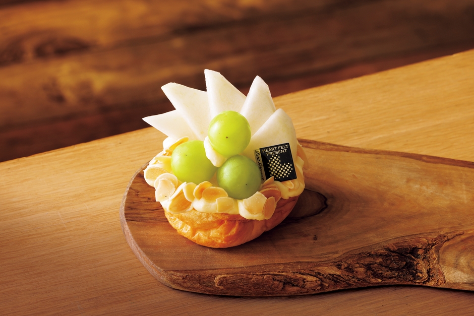 山形県産のシャインマスカットとラ・フランスをたっぷり使い、チーズケーキのような逸品。ソフトなブリオッシュとクリームチーズ、フルーツの相性抜群。