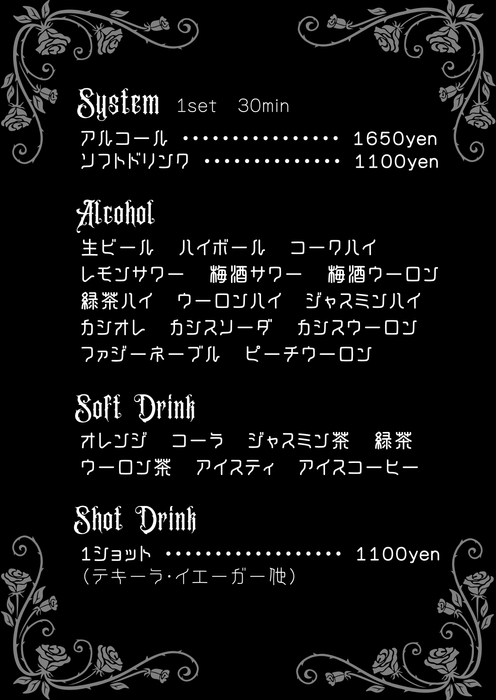 また、オムライスやミックスナッツなどの軽食やおつまみをご用意している場合もございます。料理好きのキャストがいる日には、特別な料理も提供されることがあります。