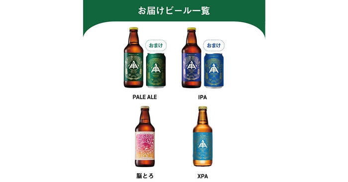 ①XPA(瓶) ②IPA(瓶) ③ペールエール(瓶) ④脳がとろけるウルトラヘヴン 3×IPA(瓶) ⑤IPA(缶) ⑥ペールエール(缶)