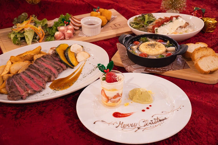 12月10日(日)~12月25日(月)の期間、飲み放題付きのXmasガーデンプランを提供、牛ステーキをメインにした多彩なお料理をご用意!