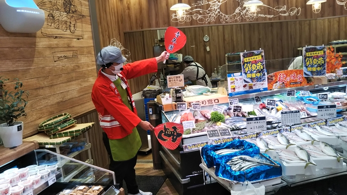 各店舗にて、複数種類のおさかな・貝類を展開し、お客様のご要望に応じて店内で調理するほか、お客様との会話を通して食べ方提案を実施。