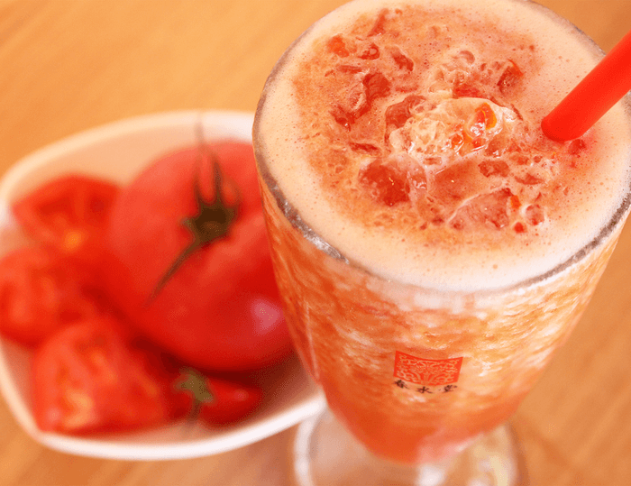 春水堂の夏季限定ドリンクは、鮮やかな赤が目を引く、『フレッシュトマトティー』。フレッシュなトマトをふんだんに使い、台湾で厳選された茶葉で毎日仕込むジャスミンティーとブレンドし、春水堂特製の手作りきび砂糖シロップで甘みを加えました。トマトのさわやかな酸味と天然の甘みにジャスミンティーのすっきりとした後味が絶妙な、トマトとお茶の新感覚スイーツ・ドリンクです。