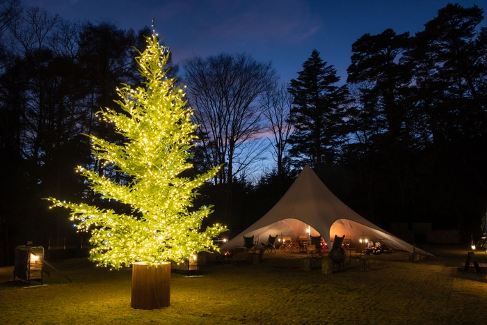 【ひらまつホテル】森のグラン・オーベルジュで過ごすクリスマスシーズン。人気の「TAKIBIラウンジ」も冬仕様にアップデートされ、飲食メニューも充実。