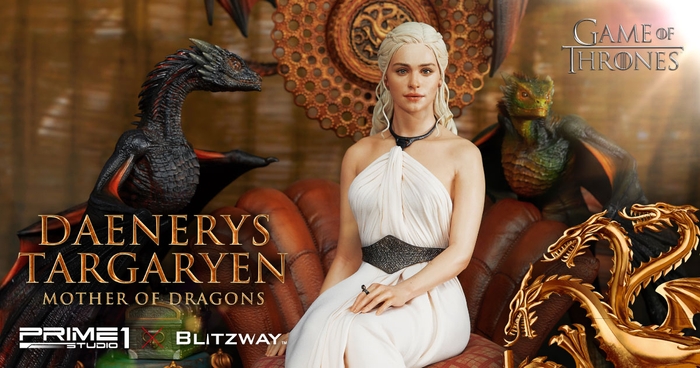 スタチューメーカー株式会社プライム1スタジオ(東京都中央区新川1丁目18-11/代表取締役:松本理恵)は「ブリッツウェイ」とのコラボアイテム第一弾として『ゲーム・オブ・スローンズ』より「アルティメットプレミアムマスターライン ゲーム・オブ・スローンズ デナーリス・ターガリエン マザー・オブ・ドラゴンズ」の予約受付を開始しました。商品の発売は2020年1月~2020年3月を予定しています。