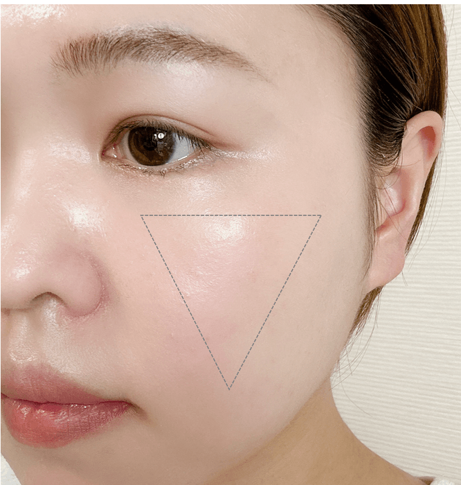 縦長の逆三角形にチークをのせてふんわり可愛く。