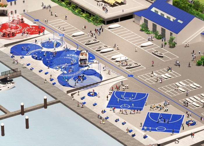 環境的なアプローチからアップサイクルされたデザイン遊具やツールを採用するだけでなく、 脳神経発明家による想像性を遊び方から培う仕掛けや、安心して外遊びを楽しんでもらえる衛生のスペシャリストによる設備も用意。 眼前に広がる海遊びとの導線も考えられていて、マリーナの新しい風景として他にないものとなります。