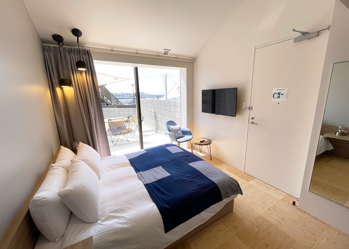 大阪北港マリーナに誕生した「HOTELL HULL」。マリン&ミッドセンチュリーをデザインコンセプトに、アップサイクルをキーワードにデザインされた、 今までにないマリーナ併設ホテルです。