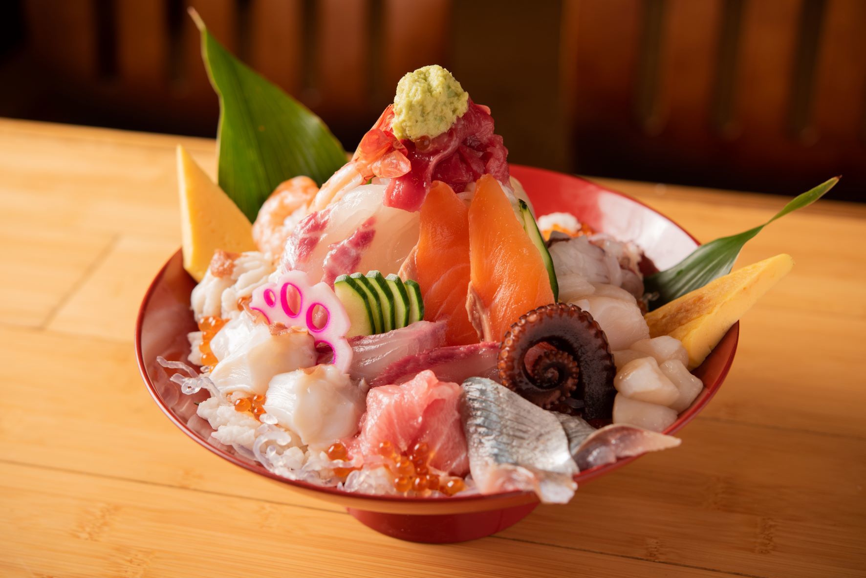 創業1934年の老舗寿司店が『百万遍!京のデカ盛り!すとりぃと』の為に作った新メニュー!老舗ならではの贅沢で新鮮なネタのデカ盛り海鮮丼!