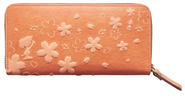 桜の天然染料で手染めしたレザーに、スヌーピーと桜の文様をエンボス! 「スヌーピー しあわせ桜づくし 桜で染めたボタニカルレザーの長財布」新発売!