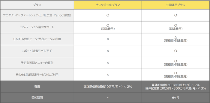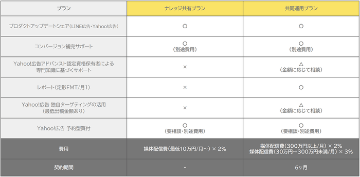 どちらか1媒体のみのプランの契約でも、プロダクトアップデートに関してはLINE広告・Yahoo!広告両方の情報をご提供いたします。