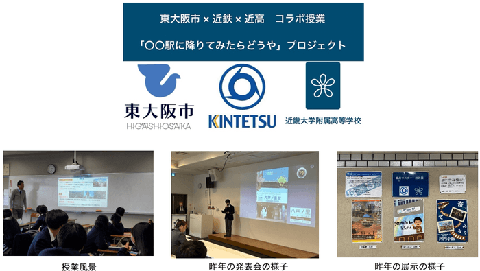 近畿大学附属高等学校(校長:丸本周生)は、近畿日本鉄道株式会社(代表取締役社長:原恭、以下「近鉄」)および東大阪市(市長:野田義和)の協力により、2022年度から社会科のカリキュラム「地理総合」※1 の授業の一環で、生徒が東大阪市内にある近鉄の駅や周辺地域を調査し、駅周辺の魅力や産業、歴史的背景をポスターで表現するプロジェクトを実施しています。