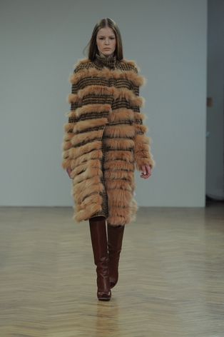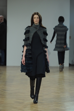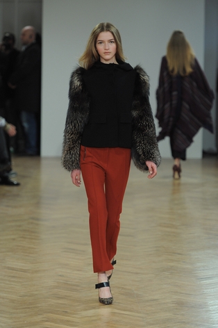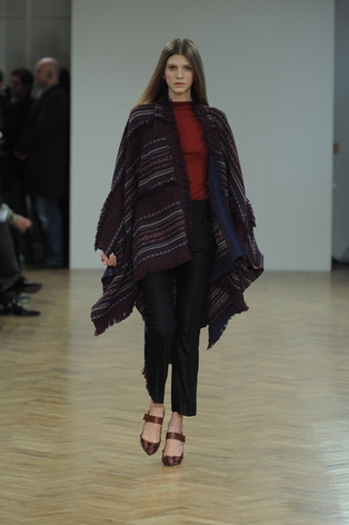 「2011年秋冬レディスコレクションは、まるであなたのお祖母さんのヴィンテージ生地を使って完璧にモダンなワードローヴに蘇らせたかのように、相反するスケールやカラーによって再生されたジャカードニットなどヴィンテージをミックスさせた(古いものと新しいものが)折衷されたコレクションです。」とクリエイティブ・ディレクターのCLARE WAIGHT KELLER は語ります。