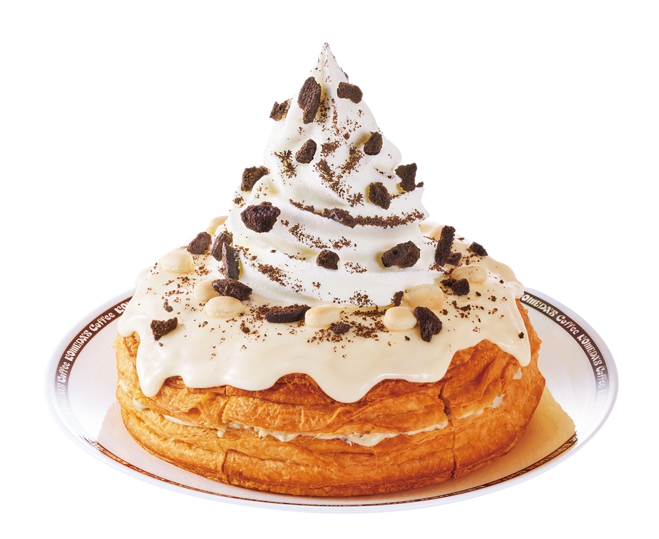 今年の新作は、北海道限定土産の「白いブラックサンダー」とのコラボレーションです!ほかほかのデニッシュに、ザクザク食感が楽しめるクッキー入りの白いブラックサンダースプレッドを挟み、ミルキーな白いブラックサンダーソースでデコレーション。ソフトクリームの上からココアクッキーとプレーンビスケットを散らしました。どこから食べても、圧倒的なミルク感を感じられる一品に仕上がりました。おいしさのあまり、雪山を直滑降で滑り降りたくなること間違いなし!
