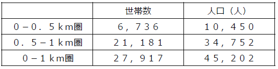・店舗から1㎞圏内は単身世帯比率が63.7%、2人世帯比率が20.3%と全体の8割が少人数世帯です。
