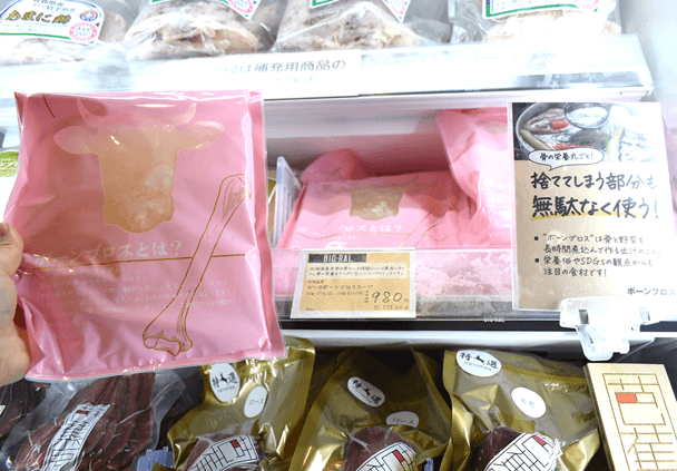 畜産冷凍コーナーでは、オーガニック牛やライフオリジナルの“あまに豚・あまに鶏”の商品を展開しています。栄養価やSDGsの観点からも注目されている“ボーンブロス”スープもおすすめです。