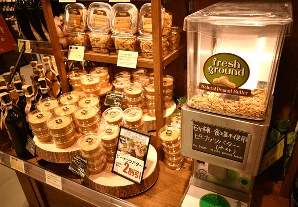 ビオラル店舗で大人気!不動の人気商品であるピーナッツバターももちろん導入。原材料はピーナッツのみで、店内の機械で挽いているため香りが豊かです。